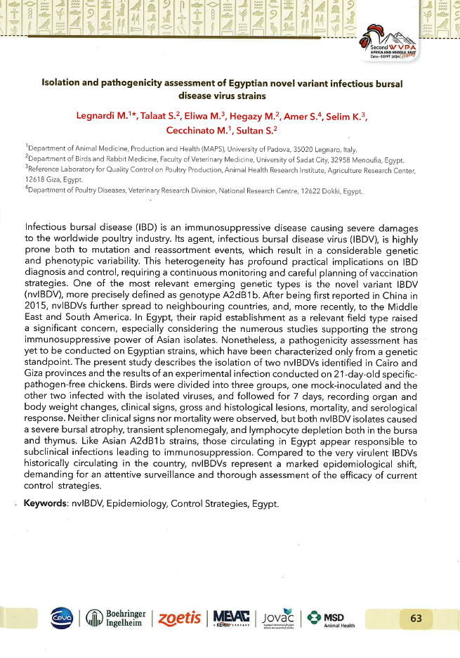 Isolation and pathogenicity assessment of Egyptian novel variant infectious bursal disease virus strains